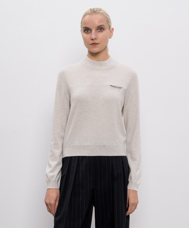 Бежевий джемпер з кашеміру з ланцюжком моніль