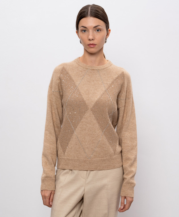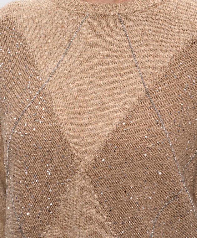 Бежевий джемпер з вовни, шовку і кашеміру з паєтками