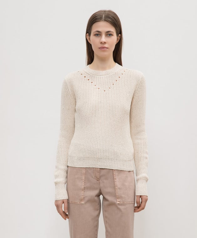 Бежевий джемпер з паєтками