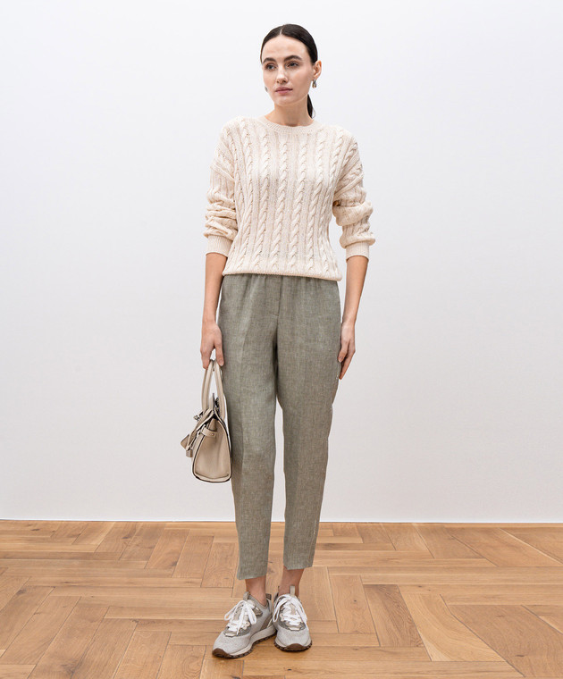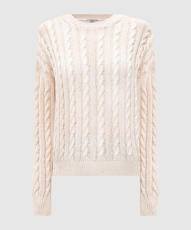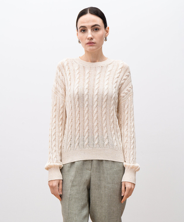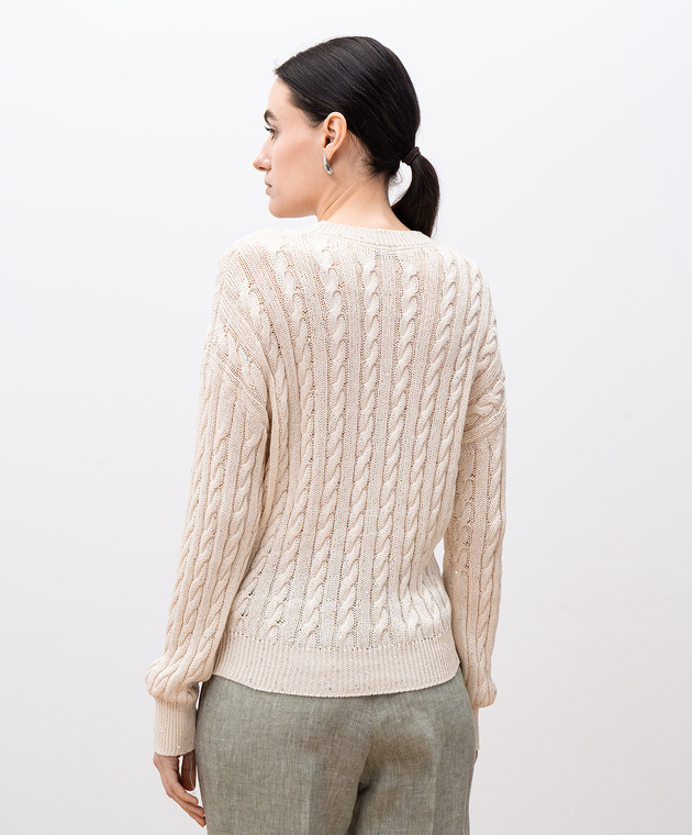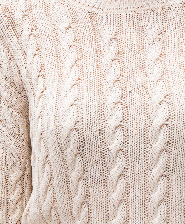 Бежевий джемпер у фактурний візерунок з паєтками