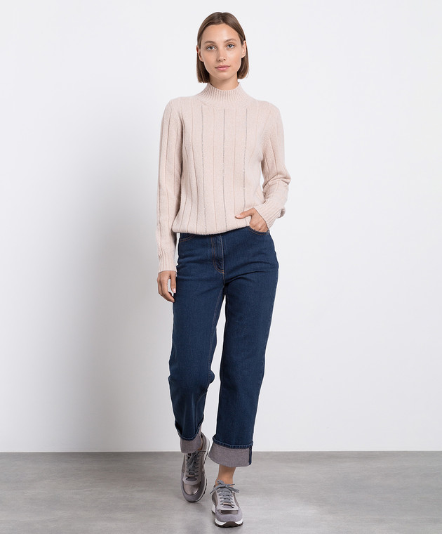 Бежевий гольф з вовни, шовку та кашеміра з ланцюжком моніль
