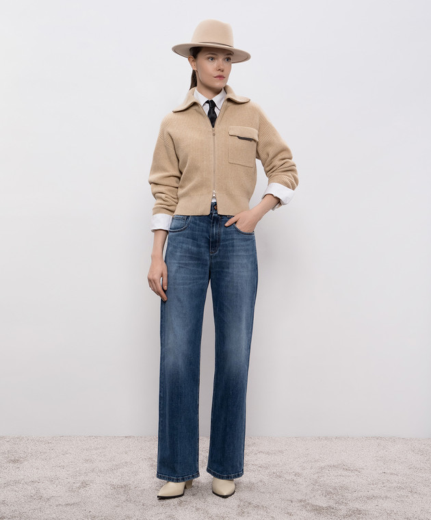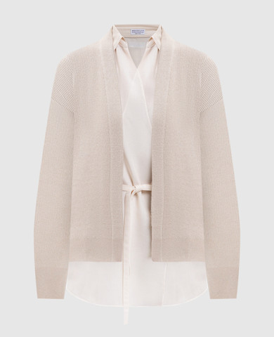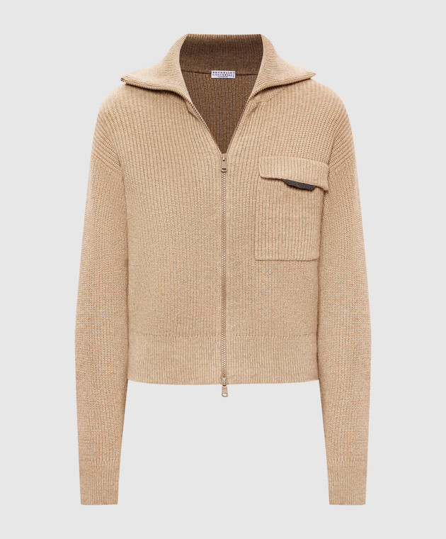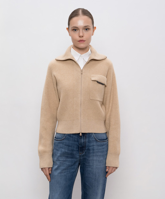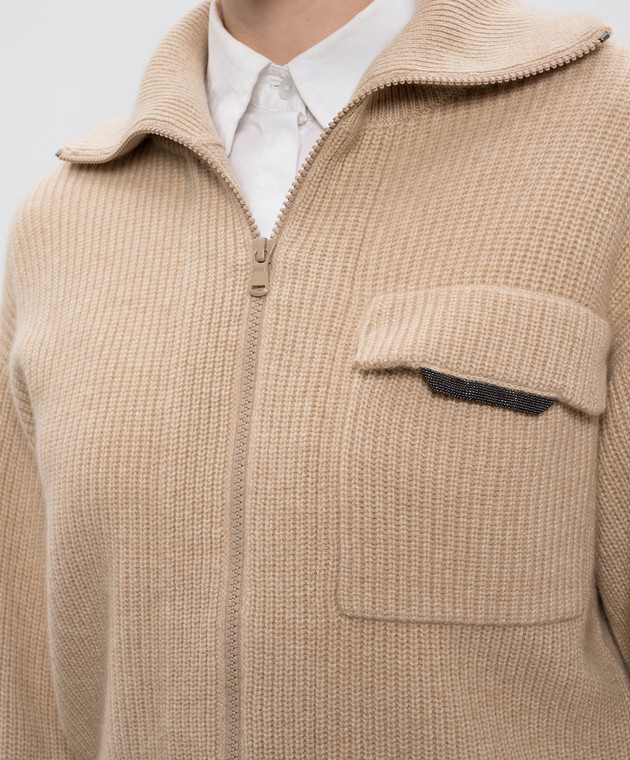 Бежевий кардиган з кашеміру з ланцюжком моніль