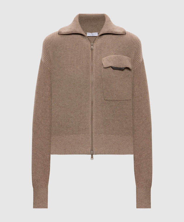 Бежевий кардиган з кашеміру з ланцюжком моніль