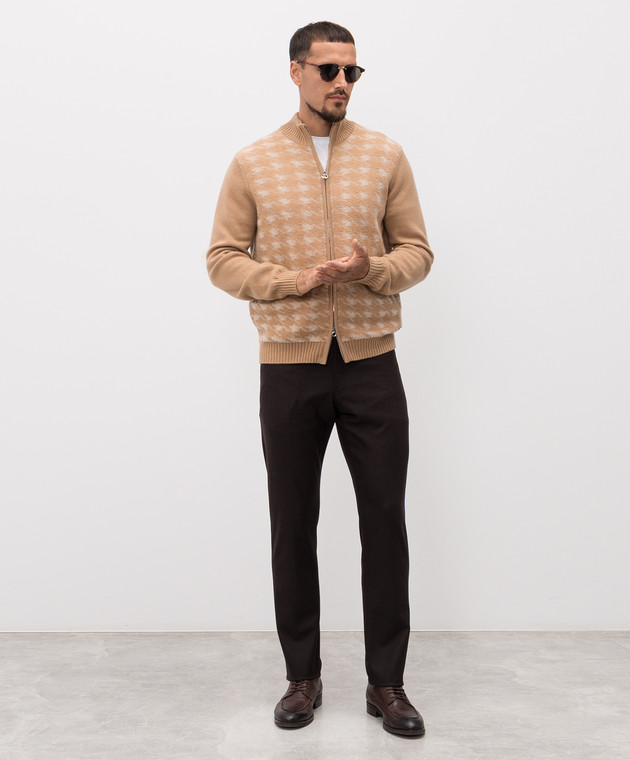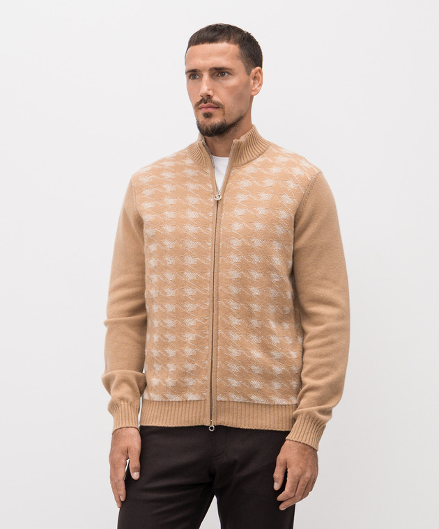 Бежевий кардиган з кашеміру у візерунок