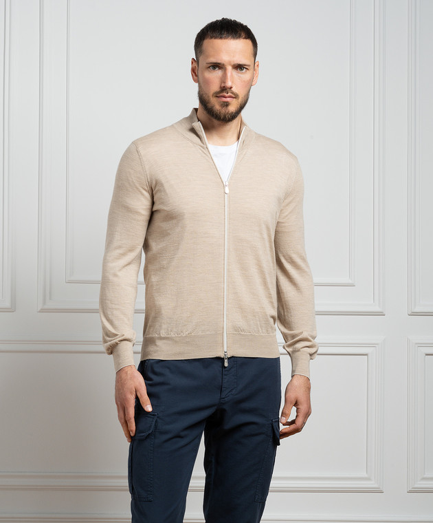 Brunello Cucinelli Бежевий кардиган з вовни і кашеміру M2400106