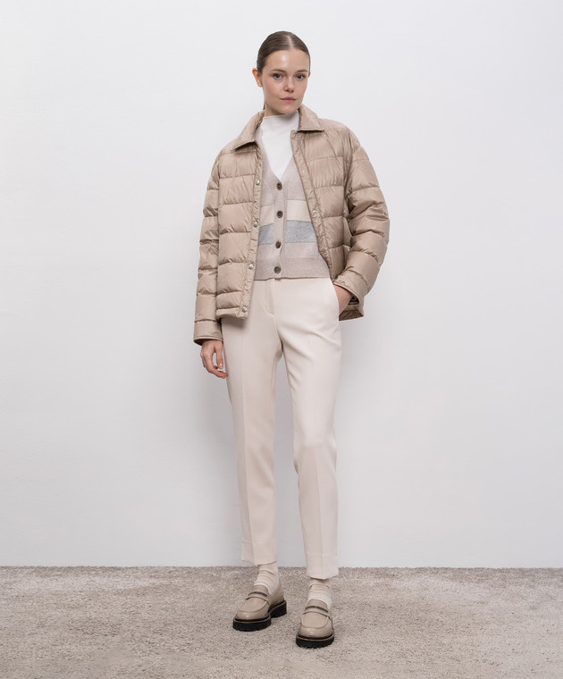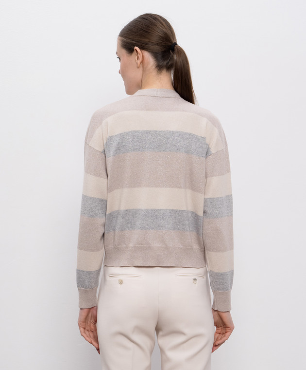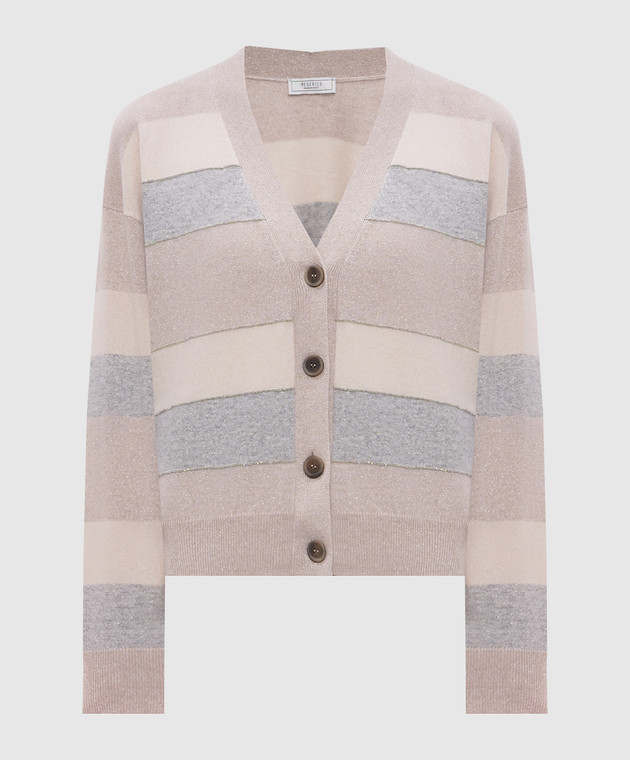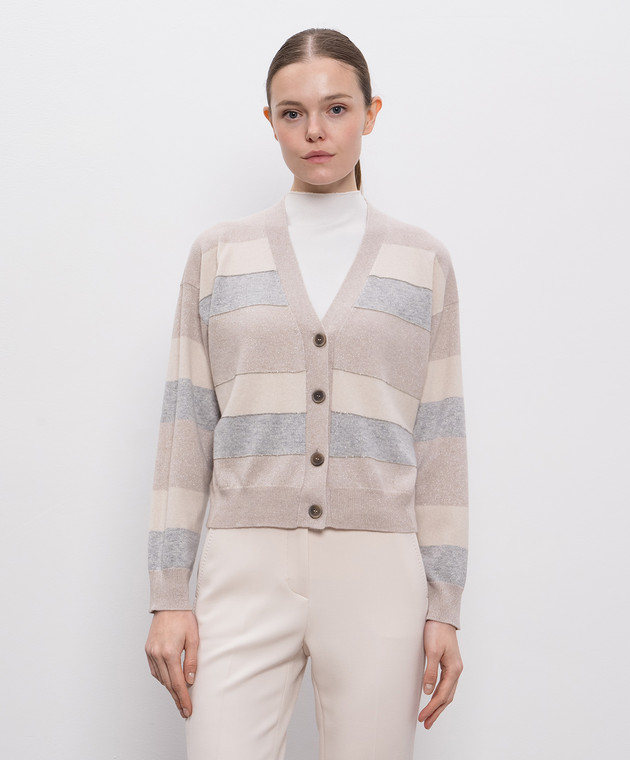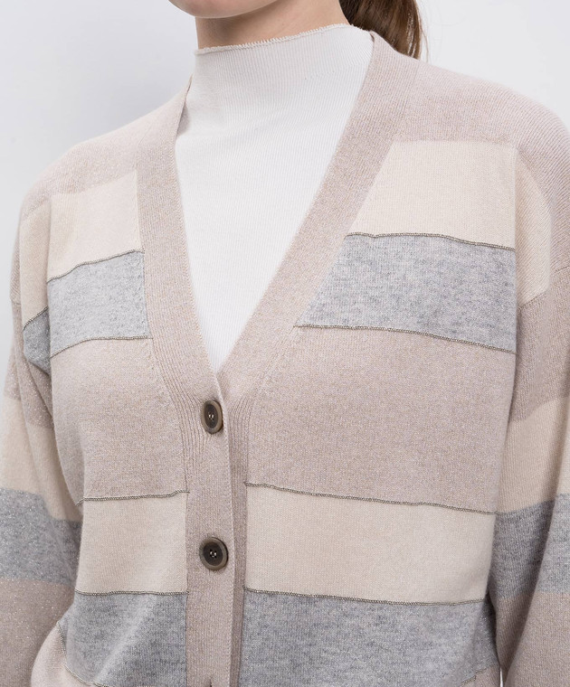 Бежевий кардиган з вовни, шовку та кашеміру в смужку