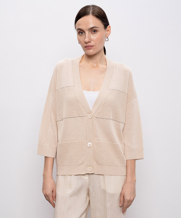 Бежевий кардиган з льоном