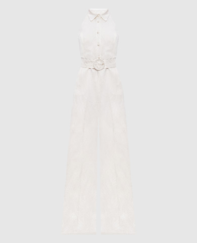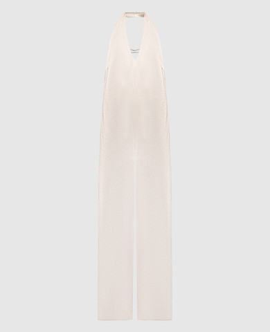 Бежевий комбінезон RAGUSA із шовку в квітковий принт з блузою