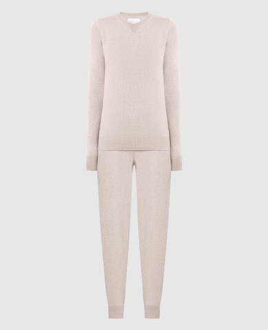 Бежевий костюм зі светра та спідниці з кашеміра