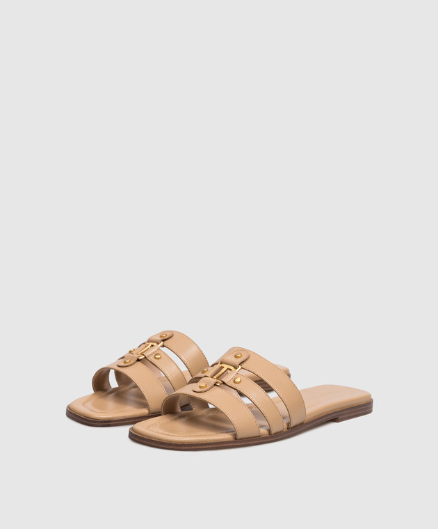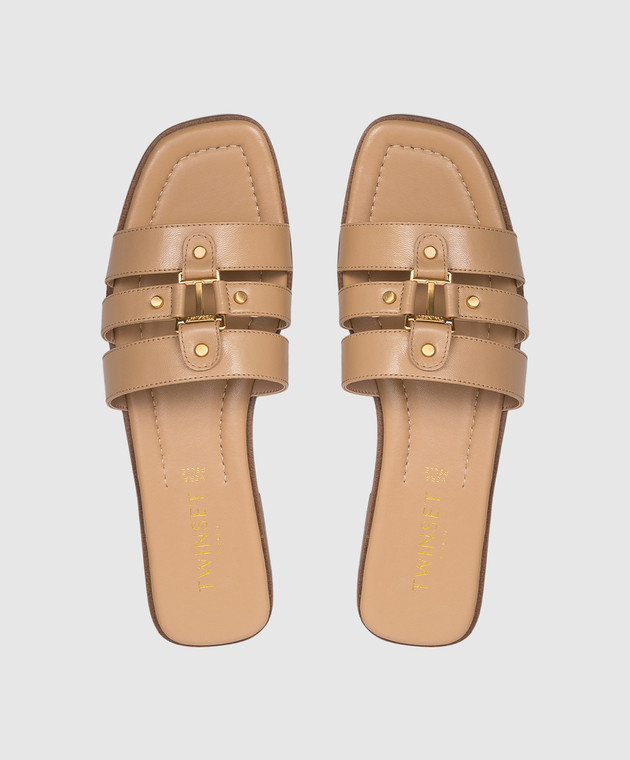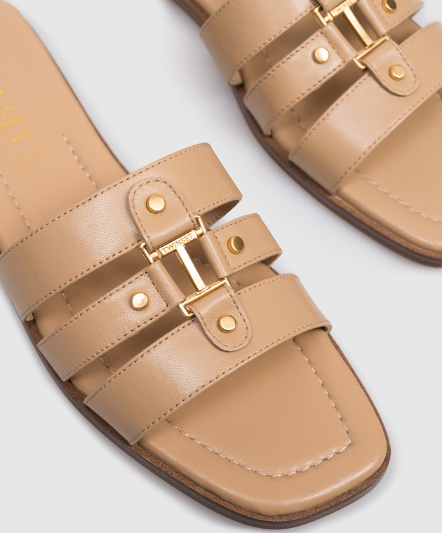 Twinset Бежевий шкіряні шльопанці з гравіюванням логотипа 261TCP038