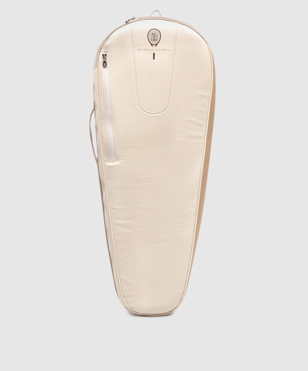 Бежевий шкіряний чохол для тенісної ракетки з логотипом