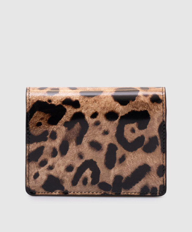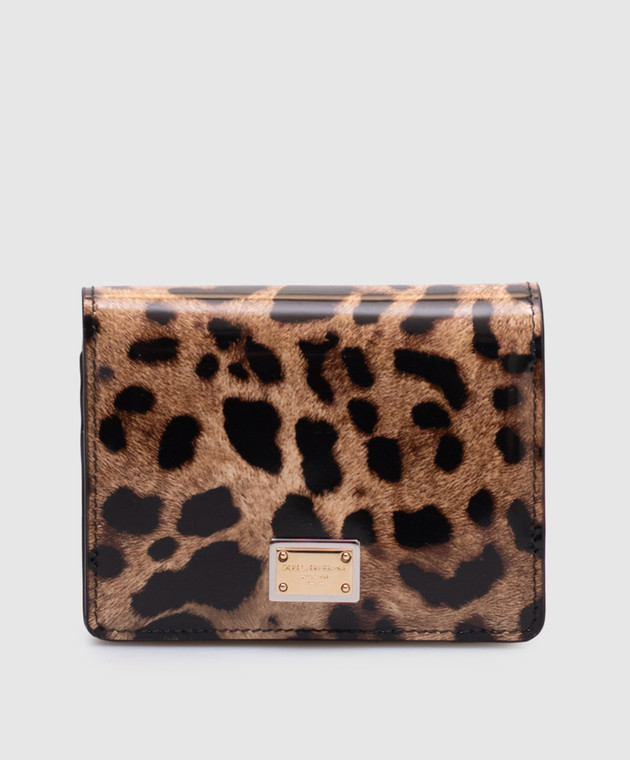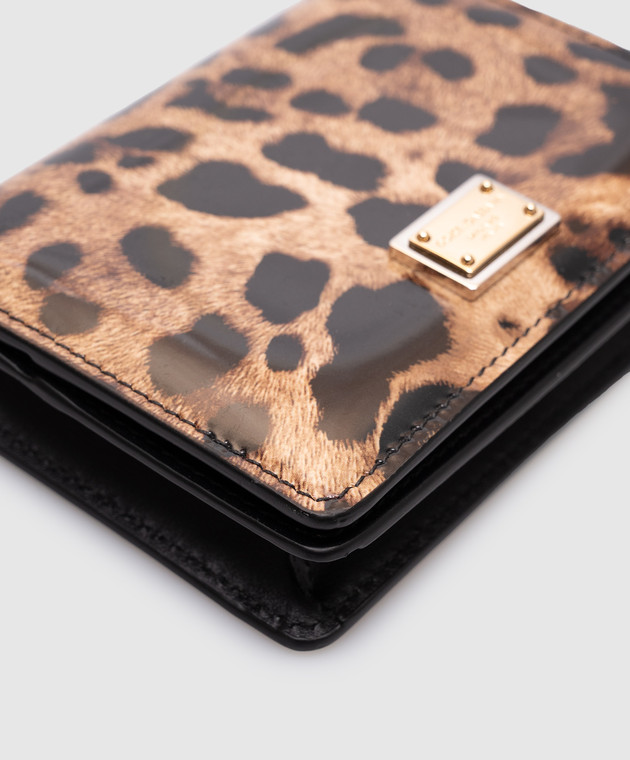 Бежеве шкіряне глянцеве портмоне в анімалістичний принт