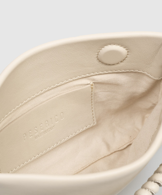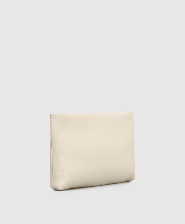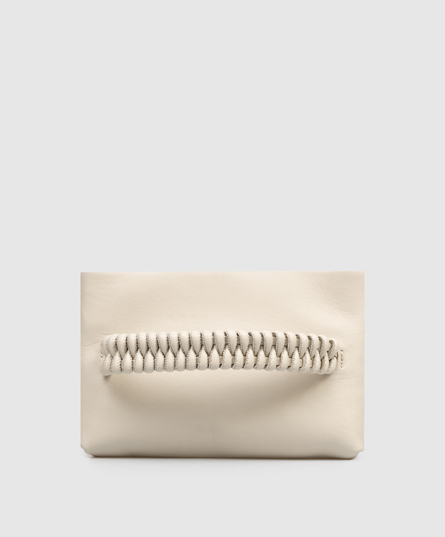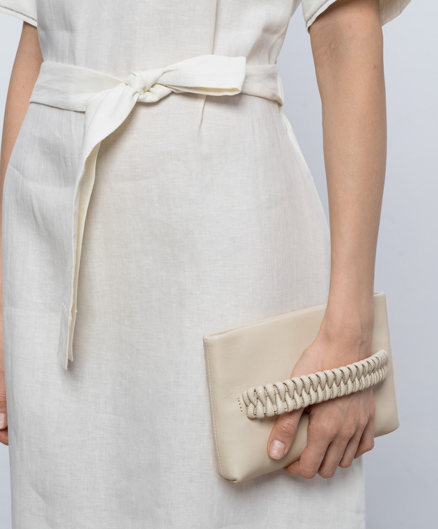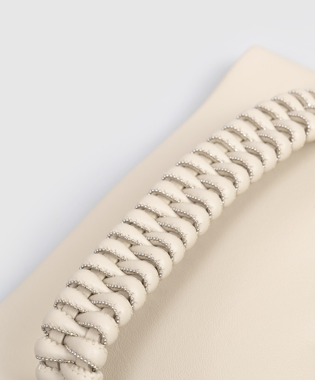 Бежевий шкіряний клатч з ланцюжком моніль