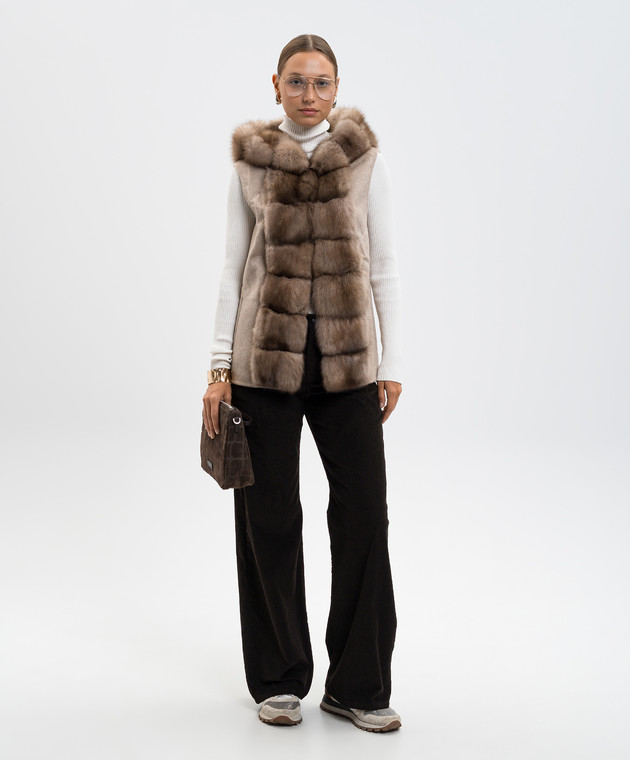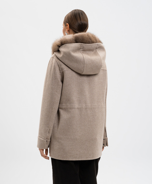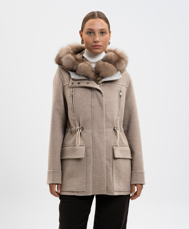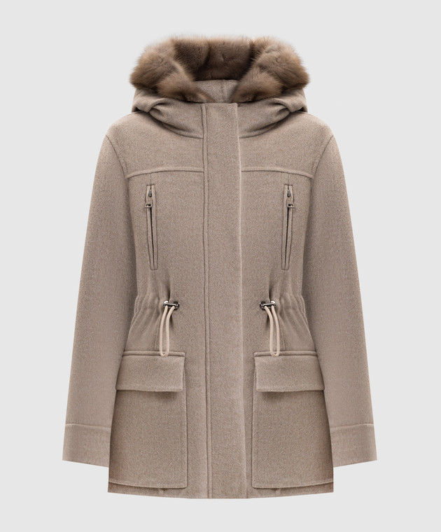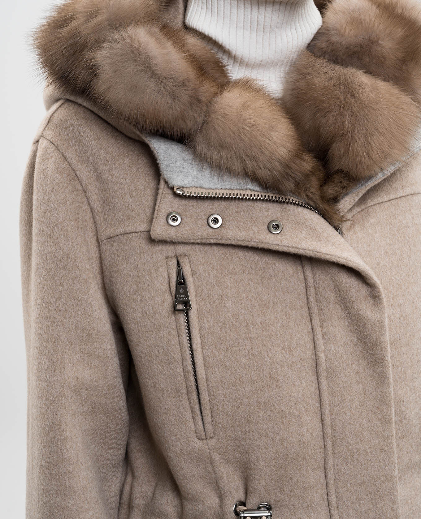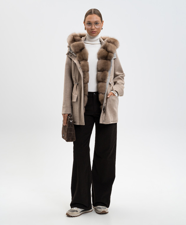 Бежева парка з кашеміру з жилетом з хутром соболя