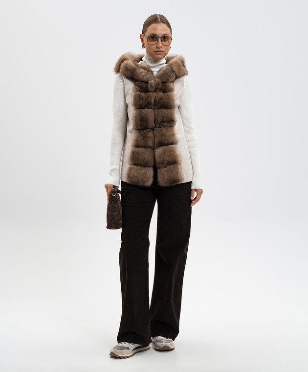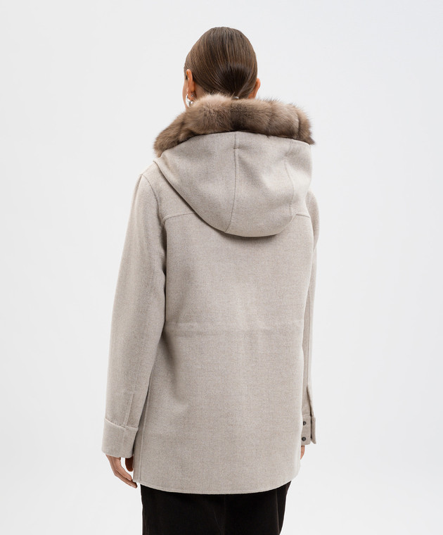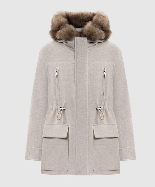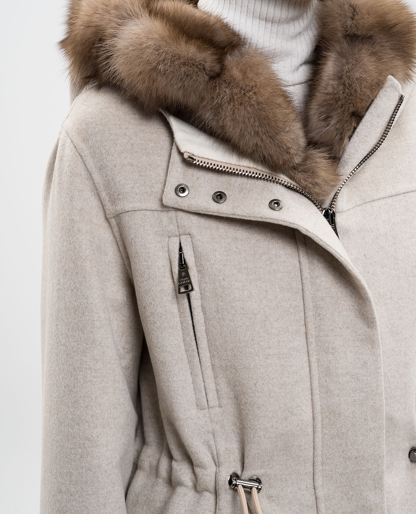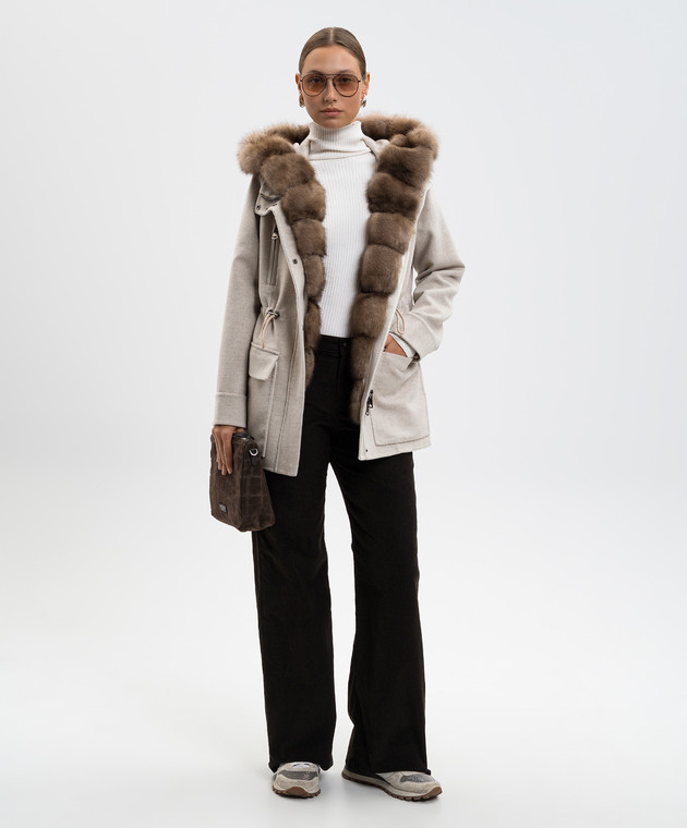 Бежева парка з вовни і кашеміру з жилетом з хутром соболя