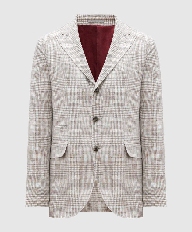 Бежевий піджак з льону, вовни та шовку в клітинку