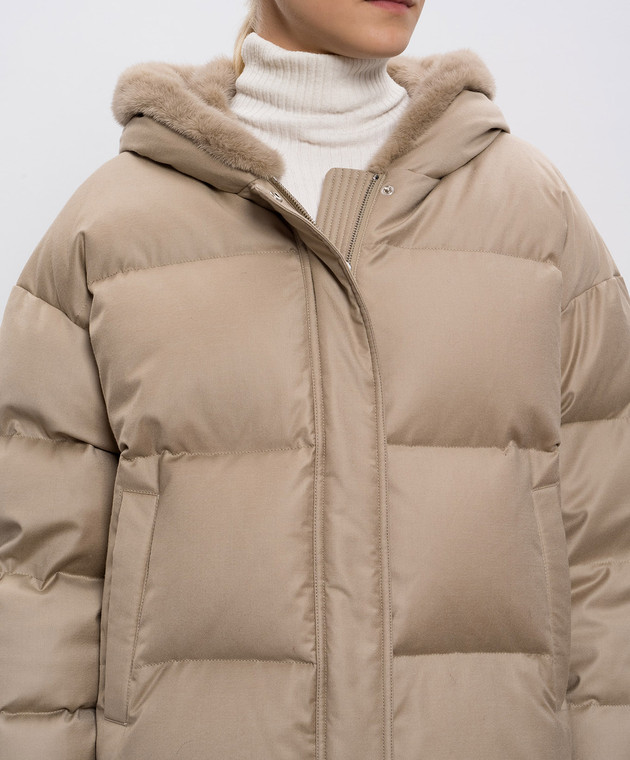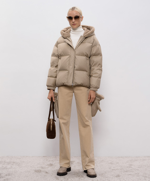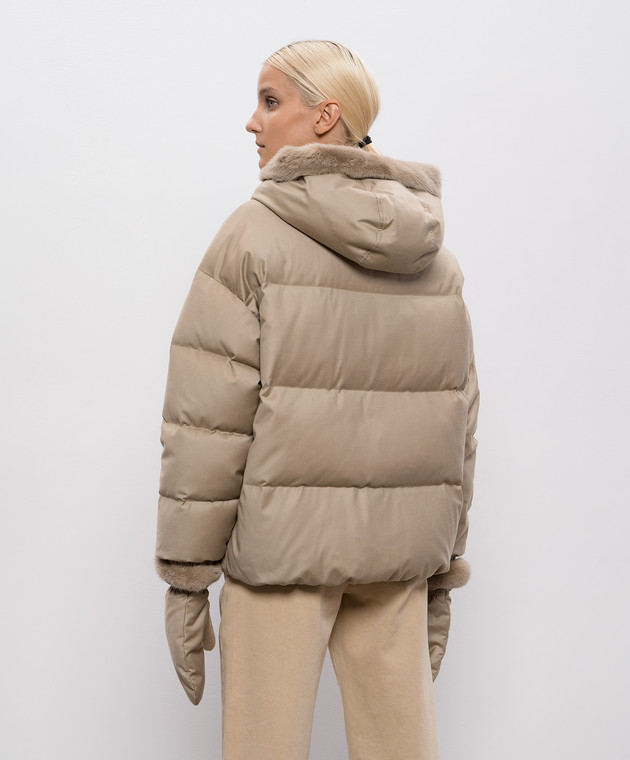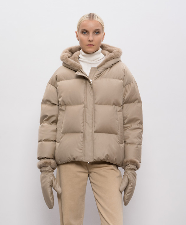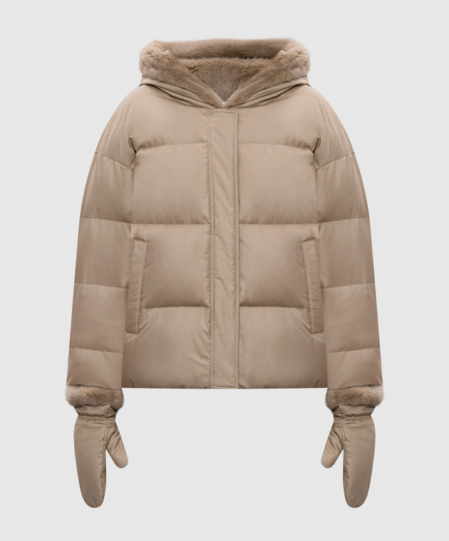• Додатково вшитий капюшон, знімні пухові рукавиці з хутром норки