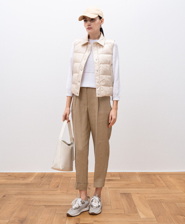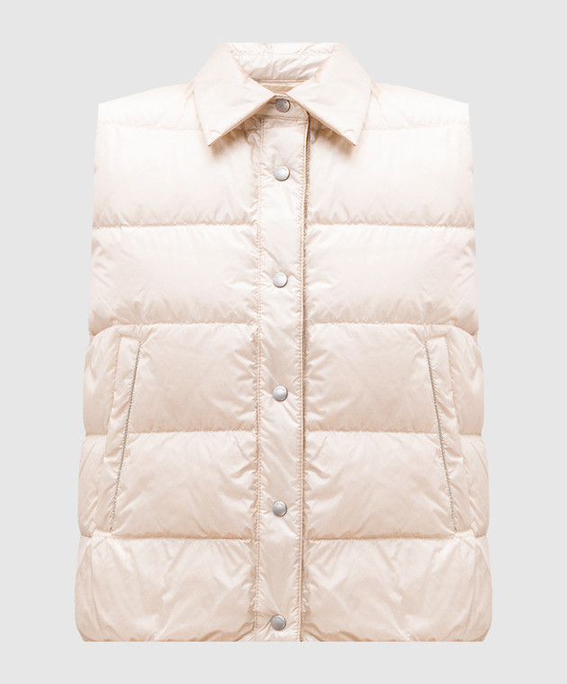 Бежевий пуховий жилет з ланцюжком моніль