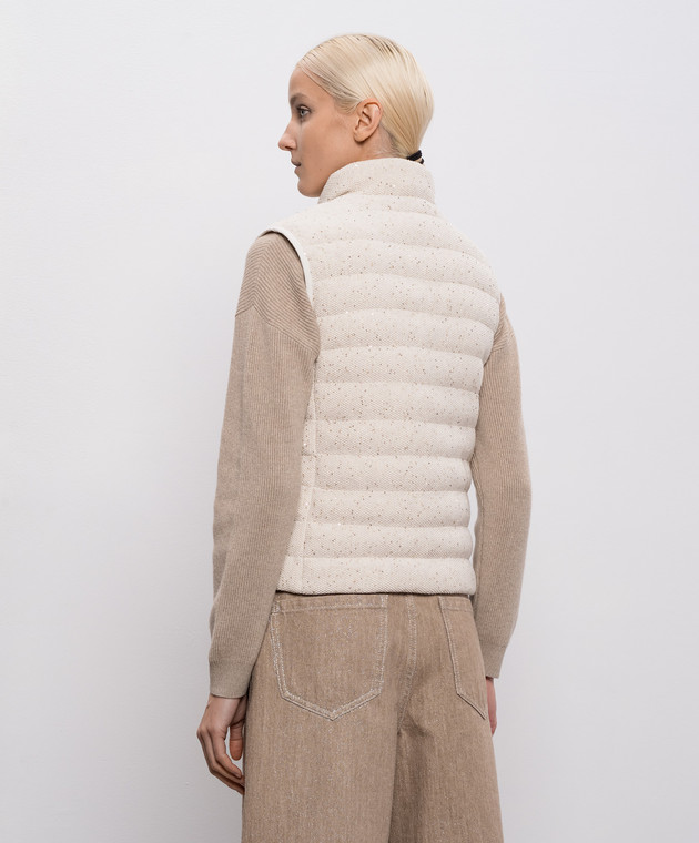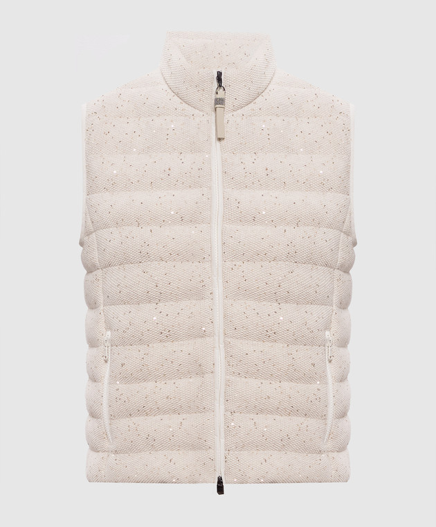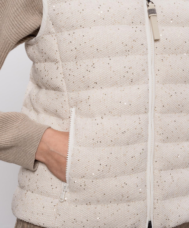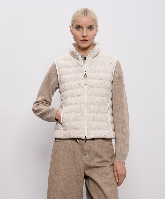 Бежевий пуховий жилет з паєтками