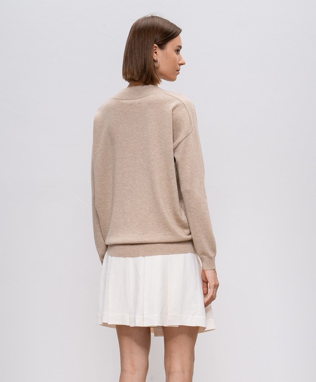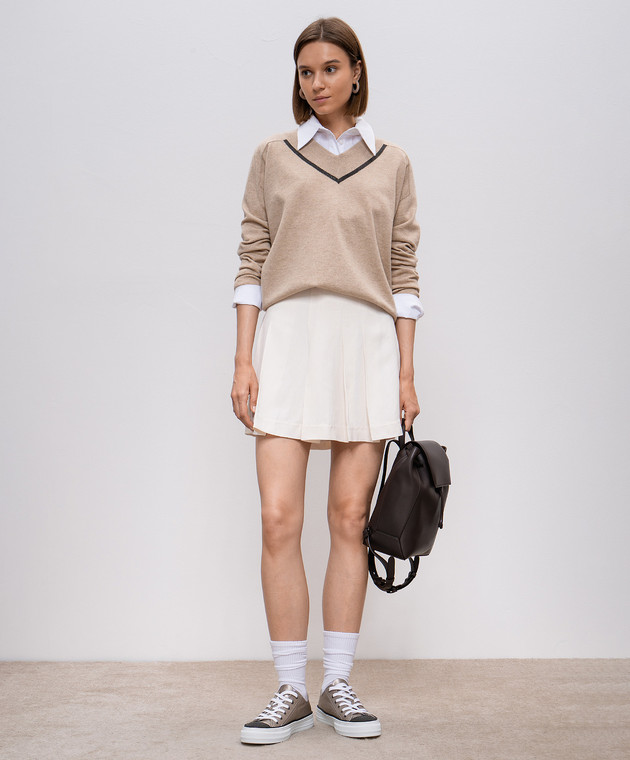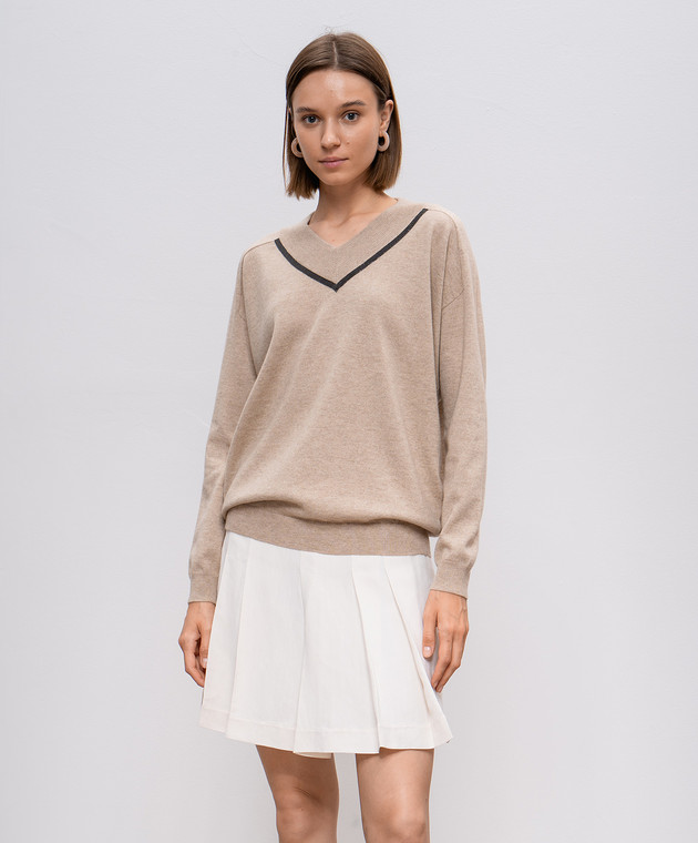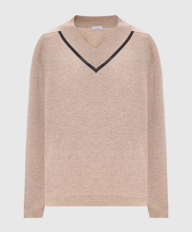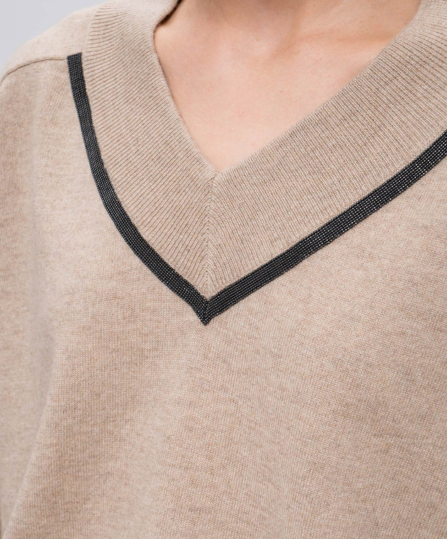 Бежевий меланжевий пуловер з кашеміру з ланцюжком моніль