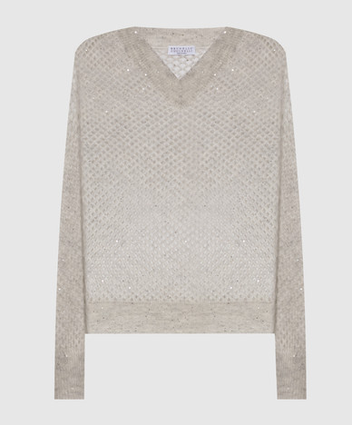 Бежевий пуловер із кашеміру з ланцюжком моніль