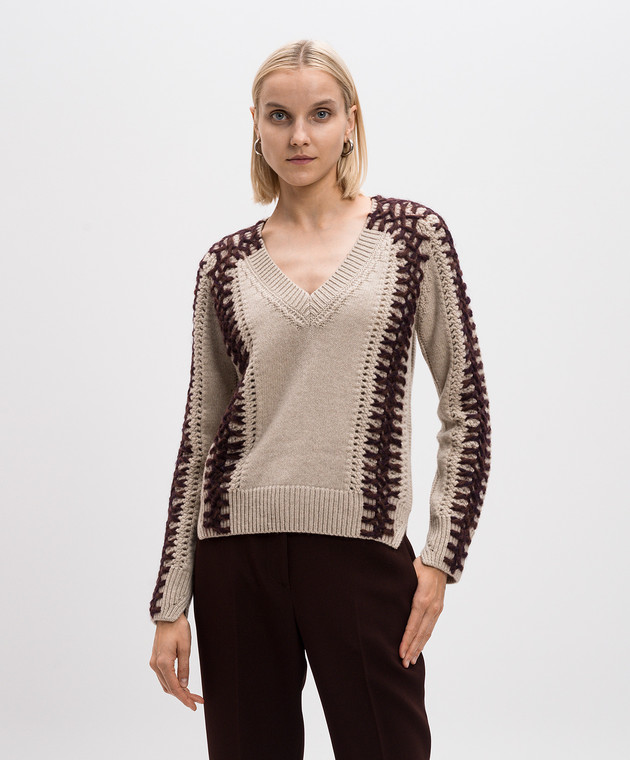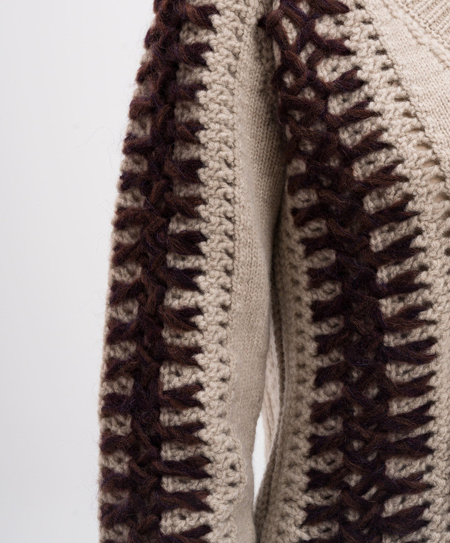 Бежевий пуловер з вовни та кашеміру з контрастною вишивкою