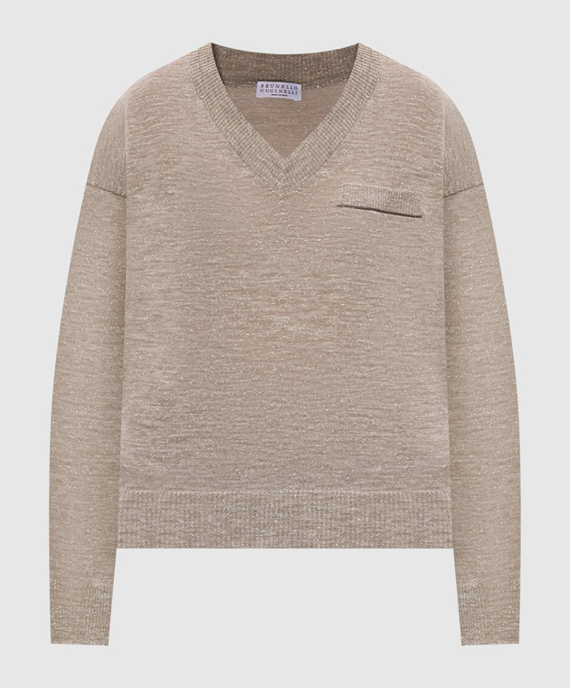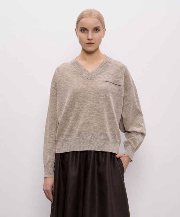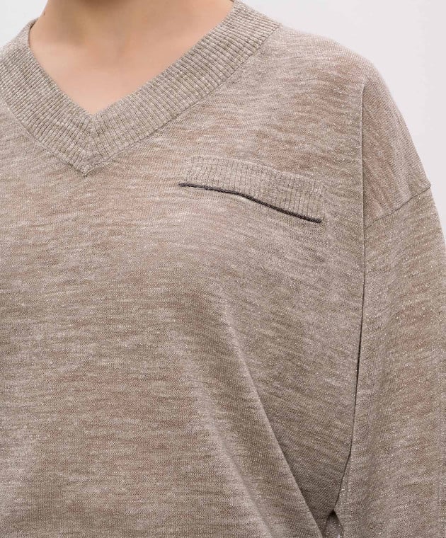 Бежевий пуловер з льоном з люрексом