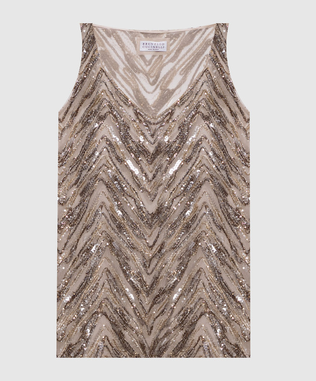 Бежевий топ із шовку з вишивкою та паєтками