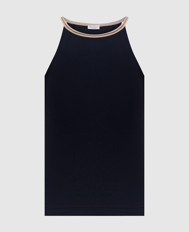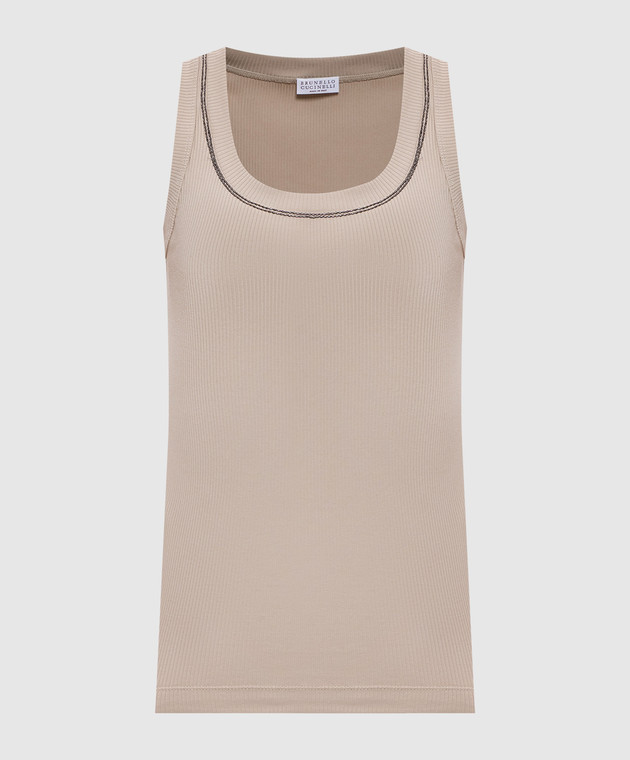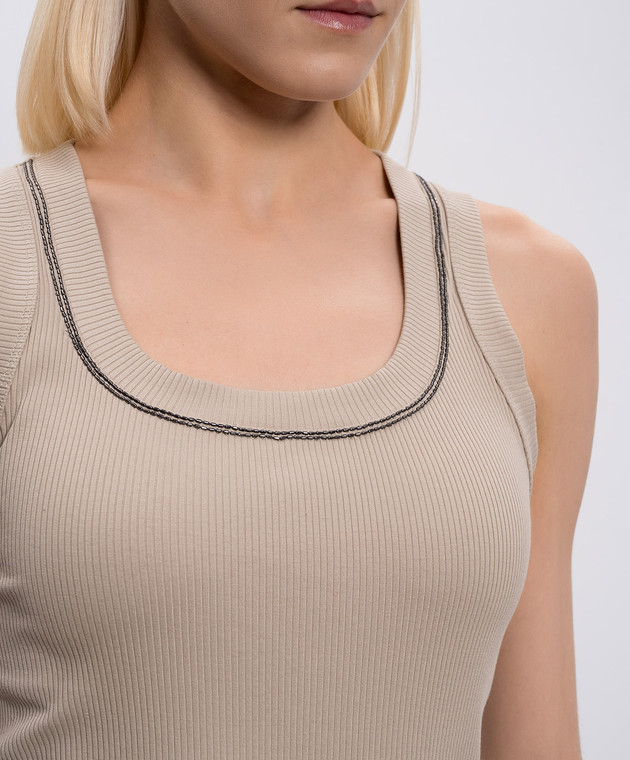 Бежевий топ в рубчик з ланцюжком оніль