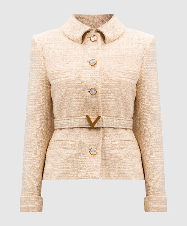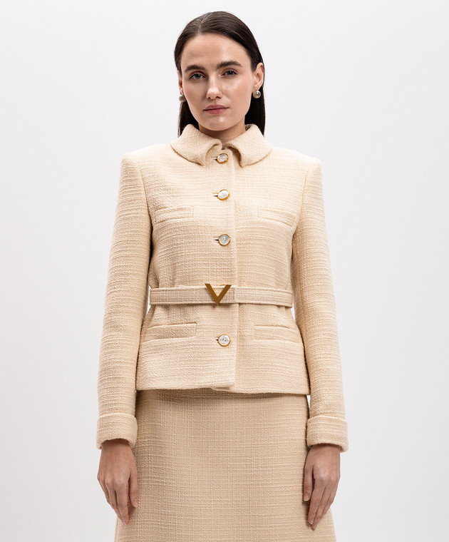 Бежевий твідовий жакет з вовни