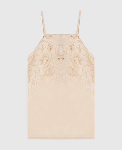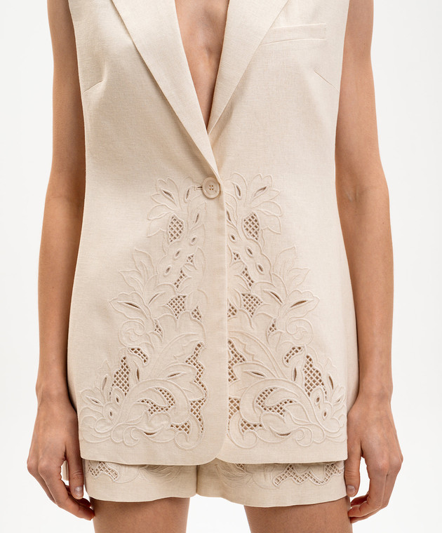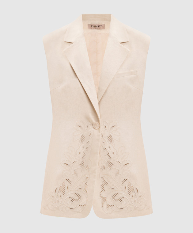 Twinset Бежевий жилет з льоном з вишивкою рішельє 261TP2314
