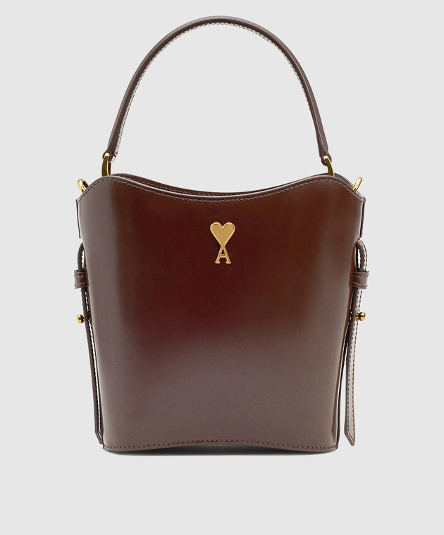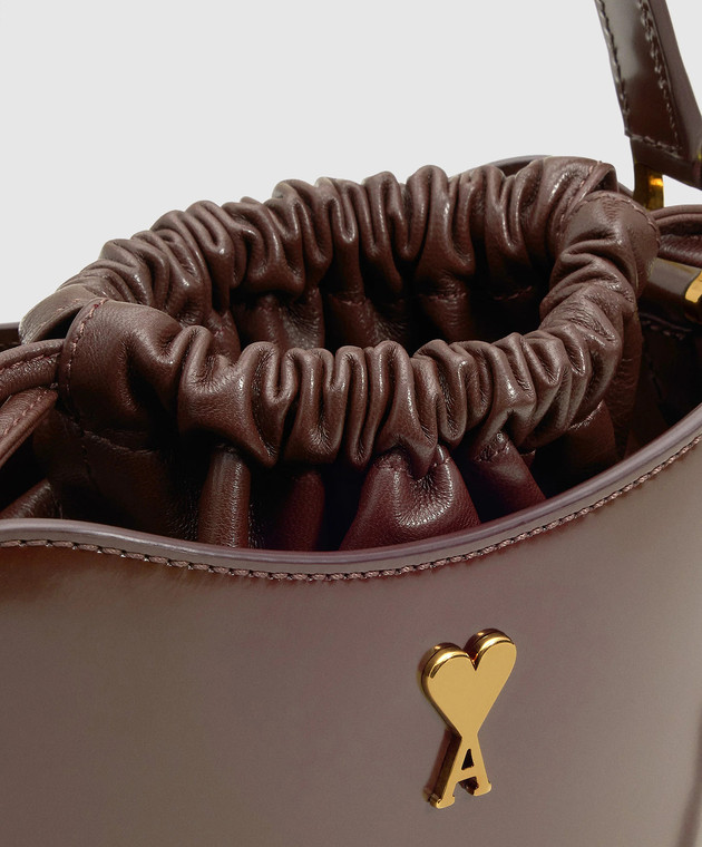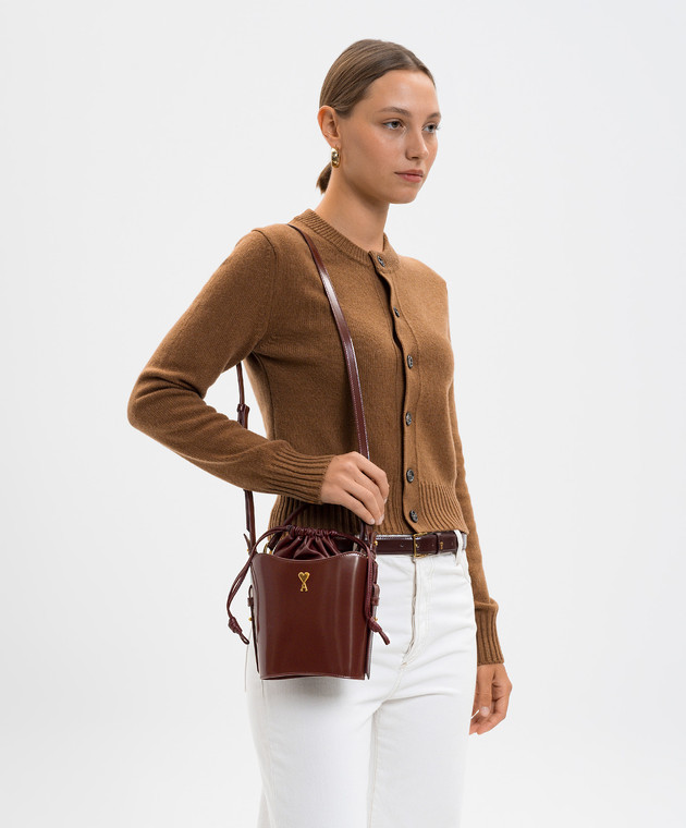 Бордова шкіряна глянцева сумка бакет-бег Paris