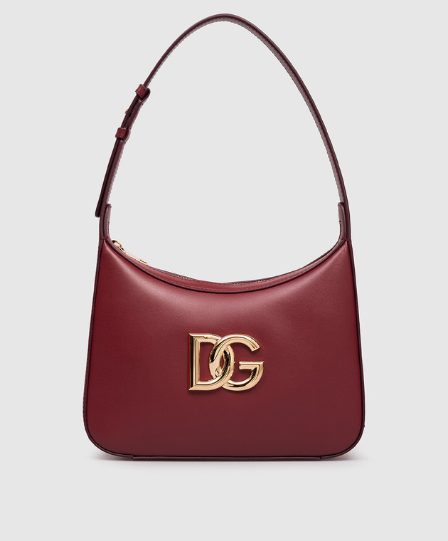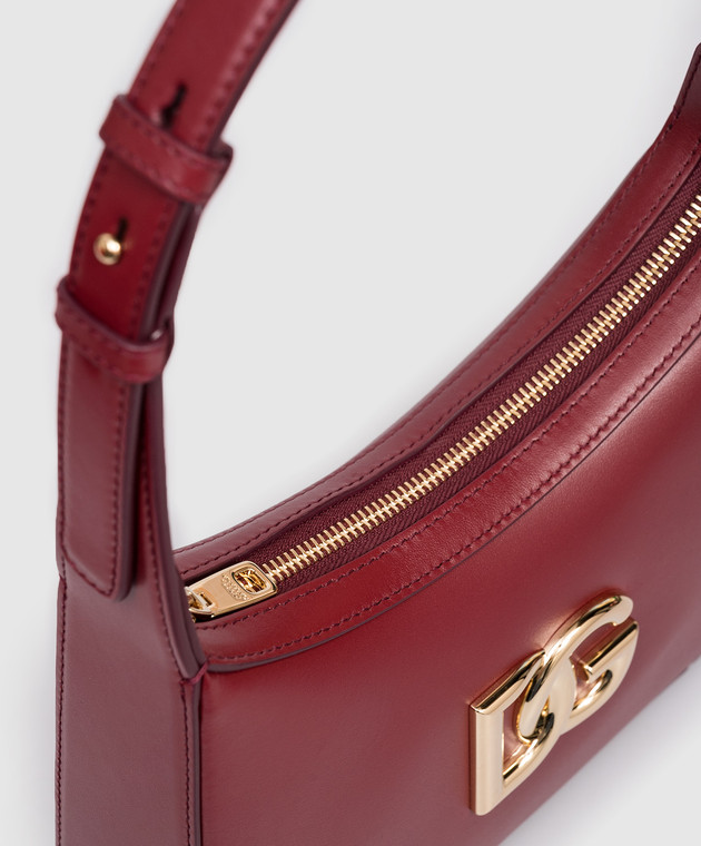Бордова шкіряна сумка-хобо 3,5 з монограмою логотипа DG