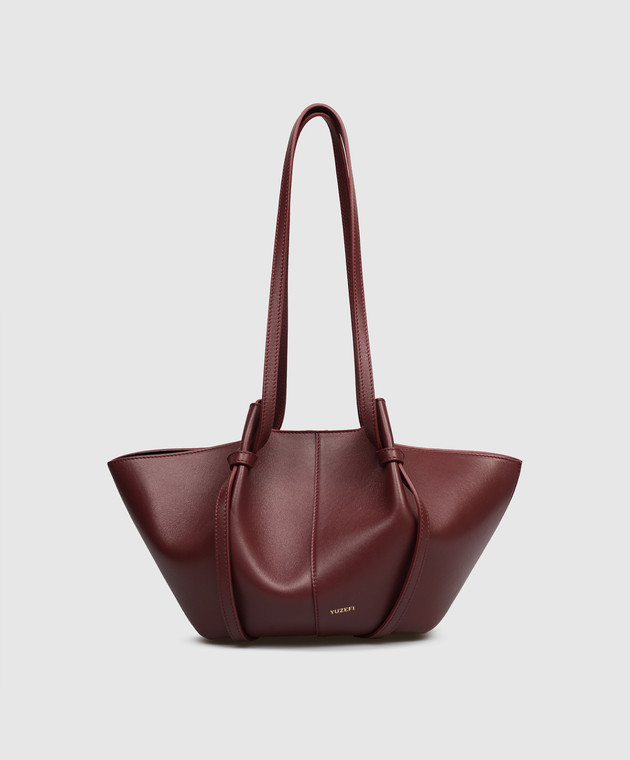 Бордова шкіряна сумка-тоут Mochi з принтом логотипа