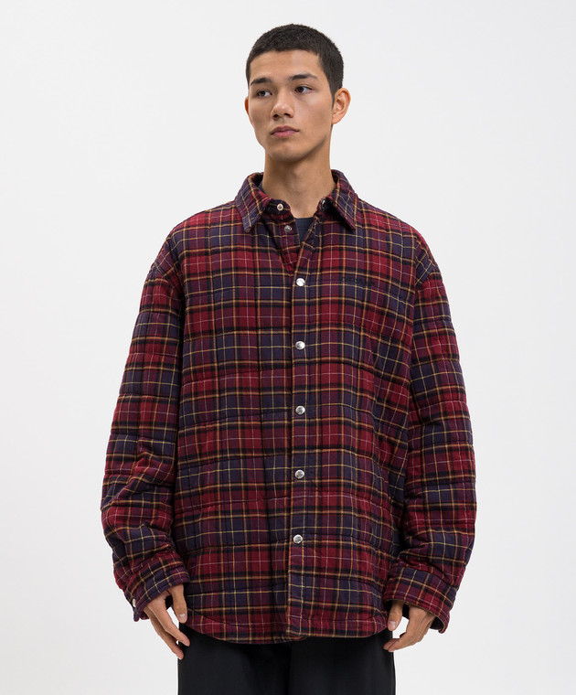 Бордова куртка в стилі сорочки в клітинку