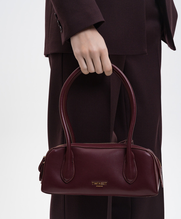 Бордова сумка-багет з логотипом