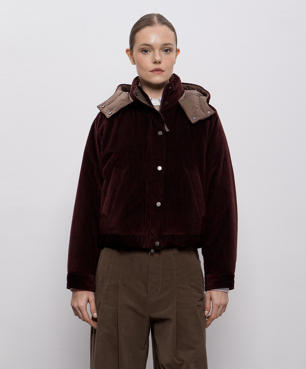 Бордова вельветова пухова куртка