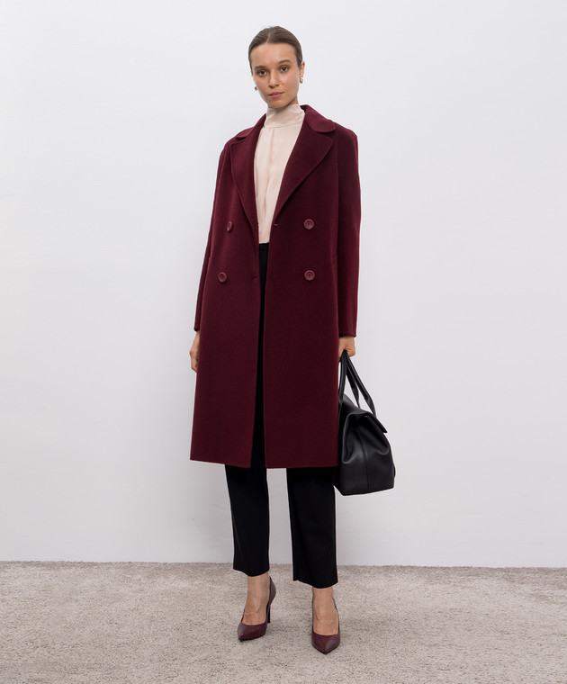 Бордове двобортне пальто CANNETI з вовни та кашеміру