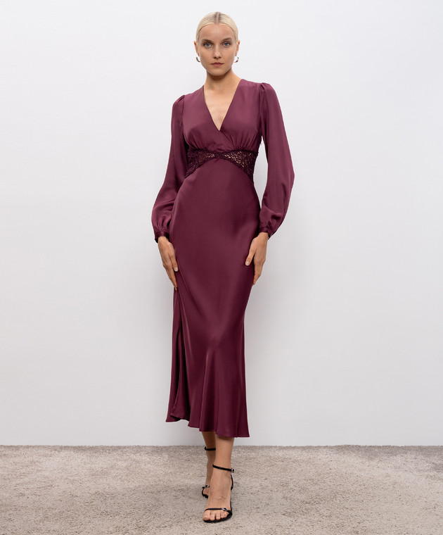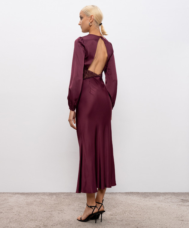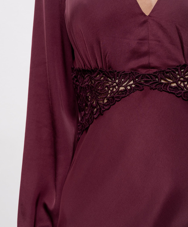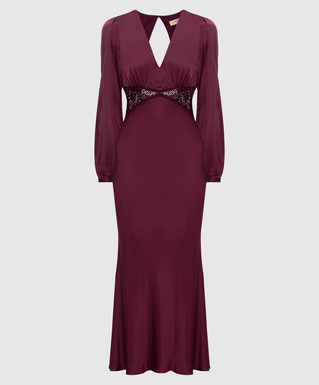 Бордова сукня максі з мереживом макраме