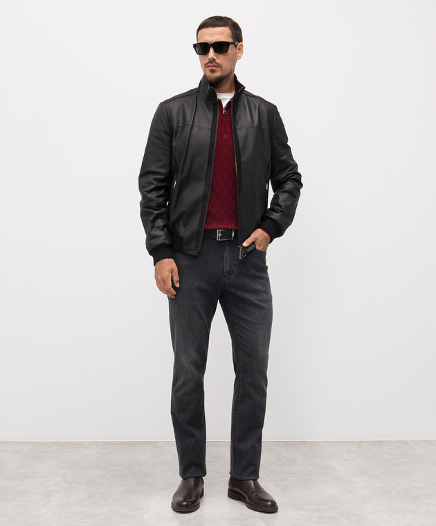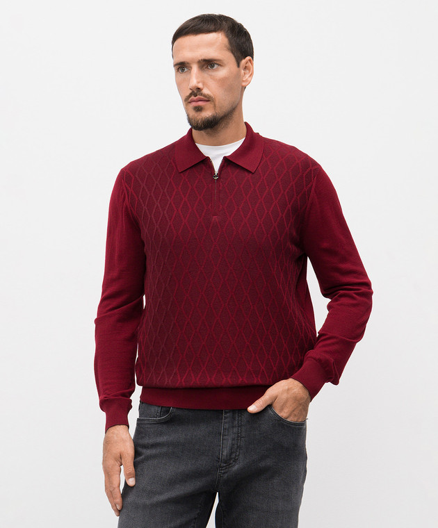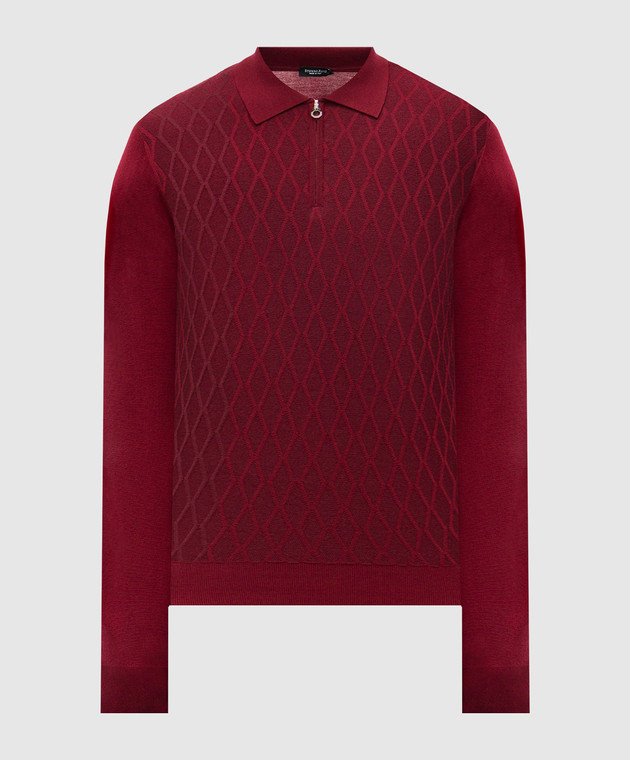 Бордове поло з вовни, кашеміру та шовку у візерунок