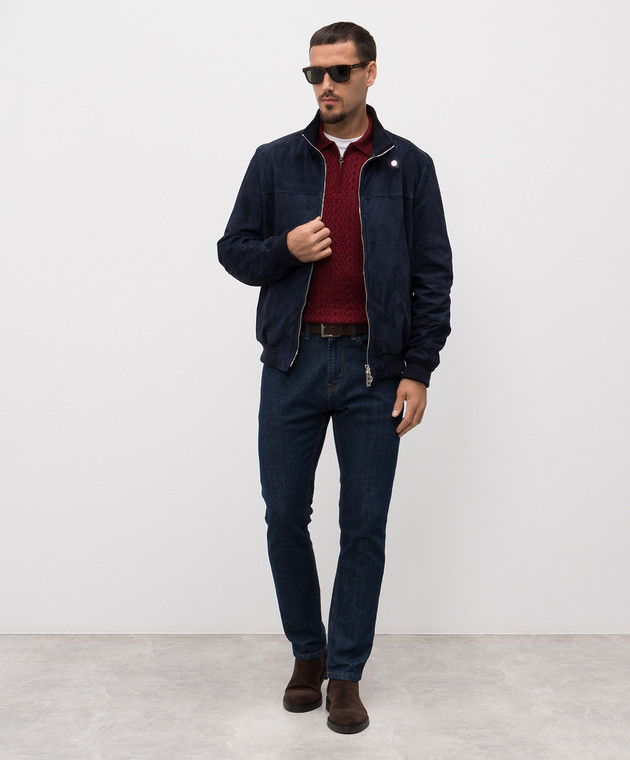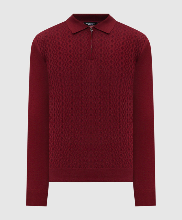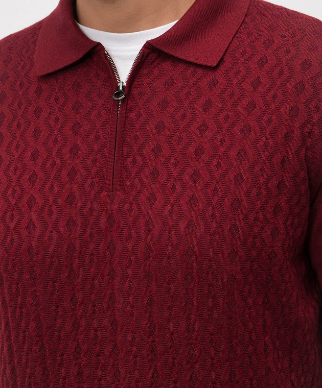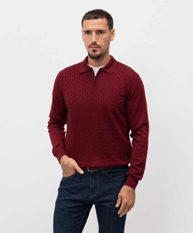 Бордове поло з вовни, шовку та кашеміру у візерунок