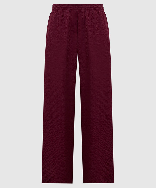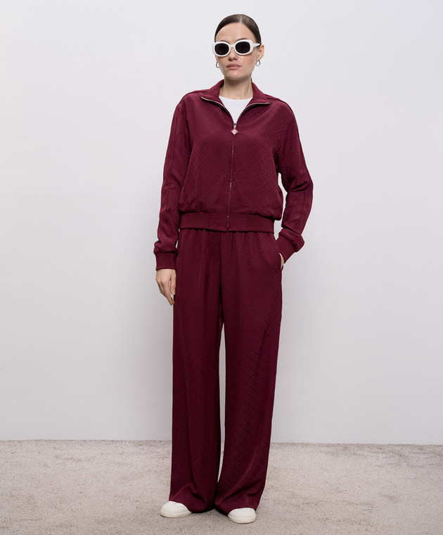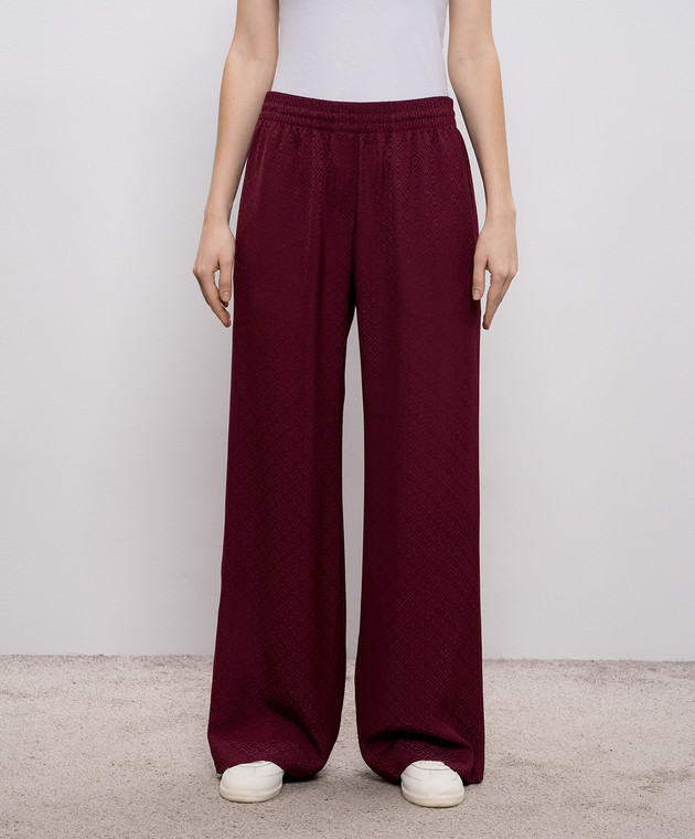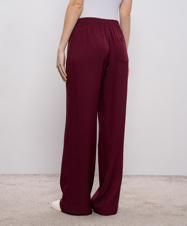 Бордові штани із шовку у візерунок