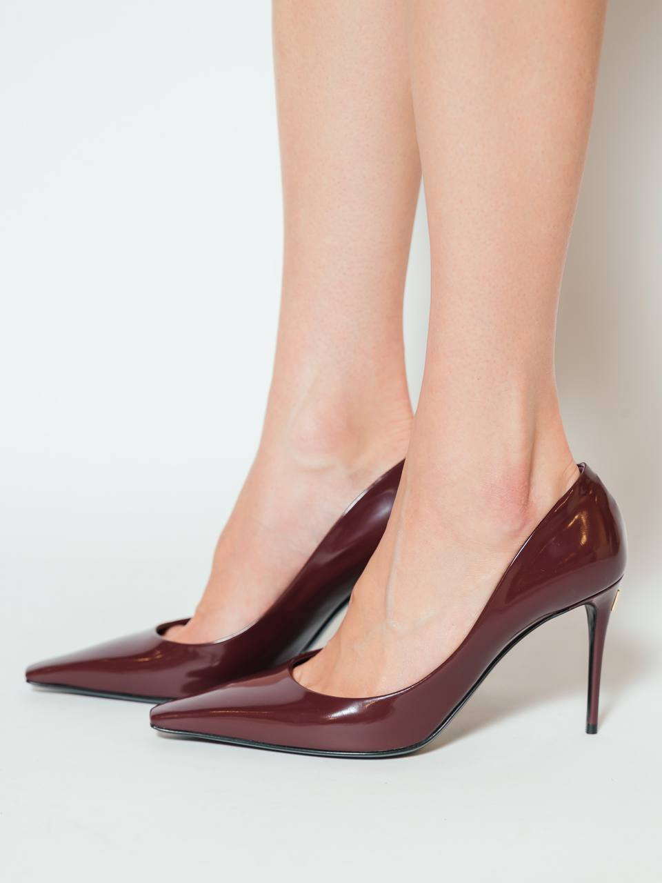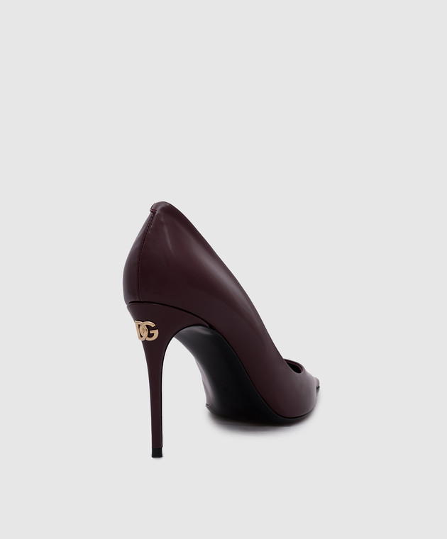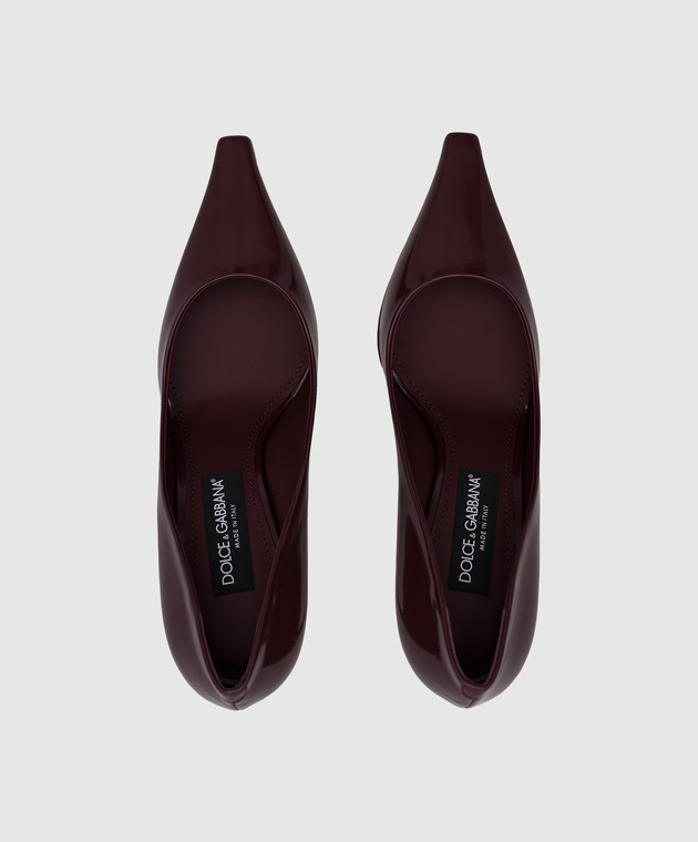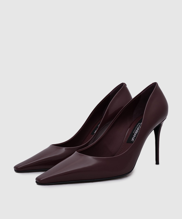 Бордові шкіряні глянцеві туфлі з логотипом