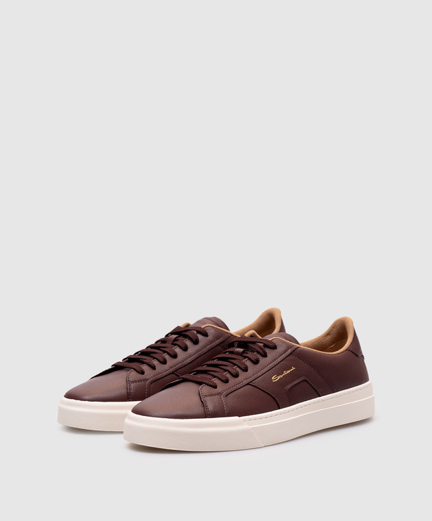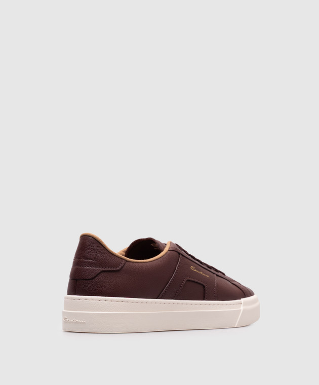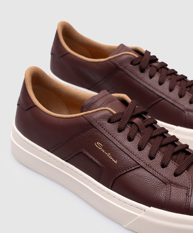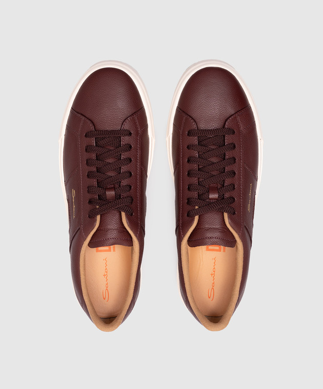 Бордові шкіряні кеди з логотипом