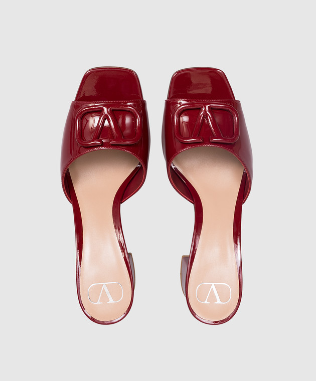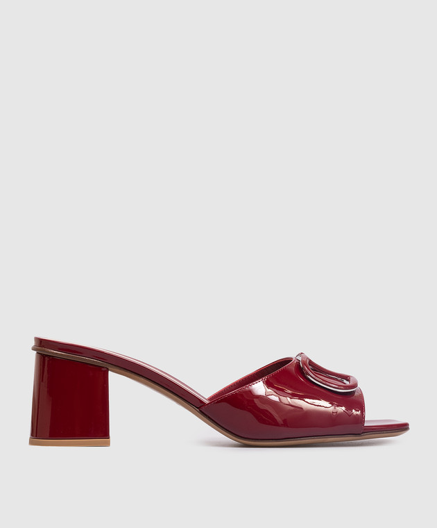 Бордові шкіряні лаковані мюлі з емблемою