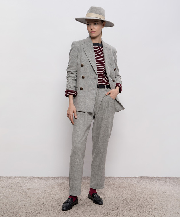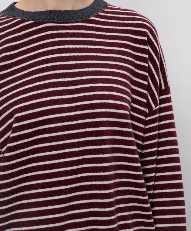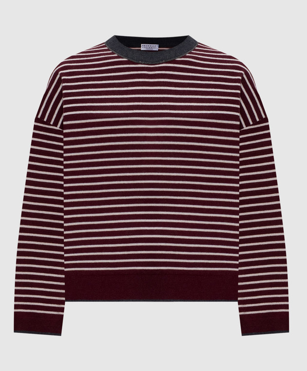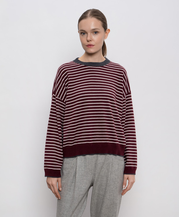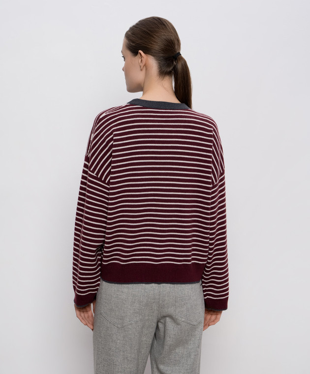 Бордовий джемпер з вовни, кашеміру та шовку в смужку