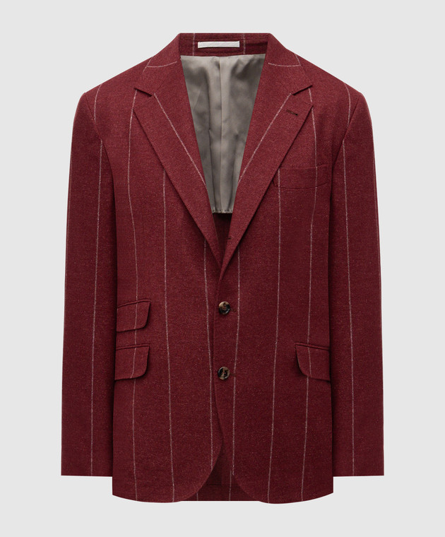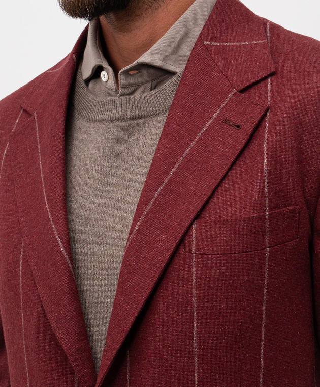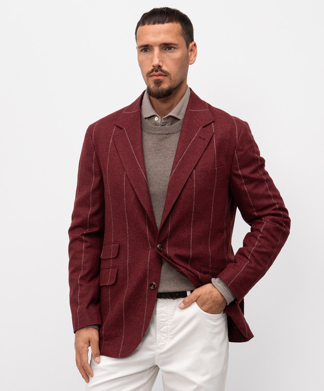 Бордовий піджак з шовку, вовни та кашеміру в смужку
