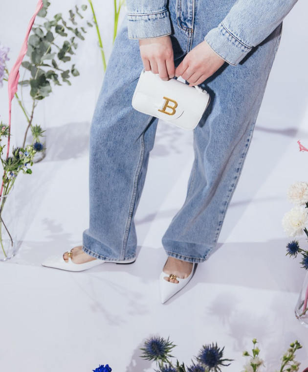 Білі шкіряні слінгбеки з металевим логотипом DG