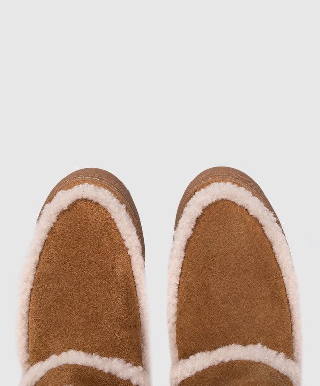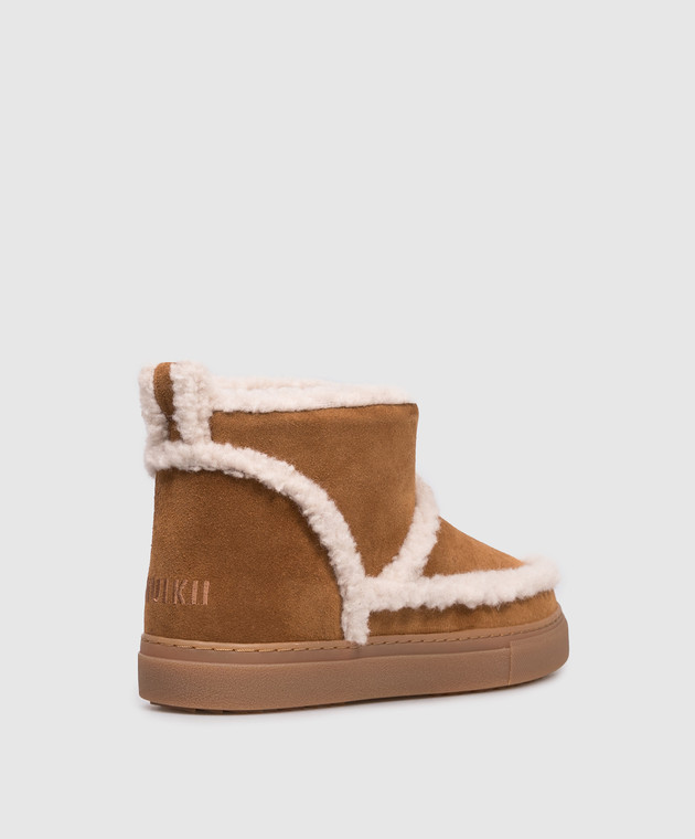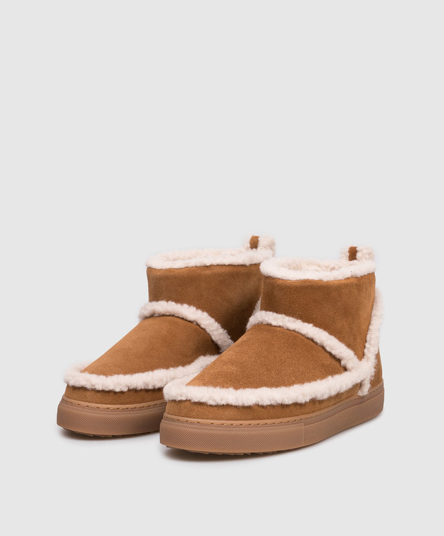 Дитячі коричневі замшеві черевики на хутрі з логотипом