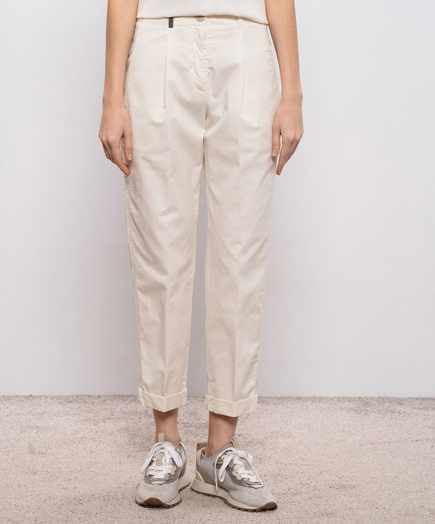 Штани кольору айворі з брендовим патчем